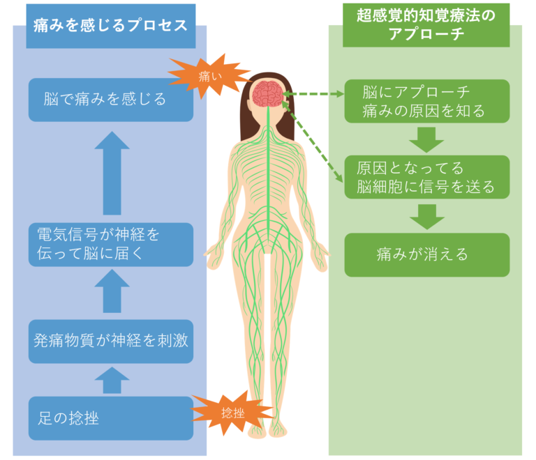 - 超感覚的知覚を用いて、痛みの根本を作っている脳にアプローチする