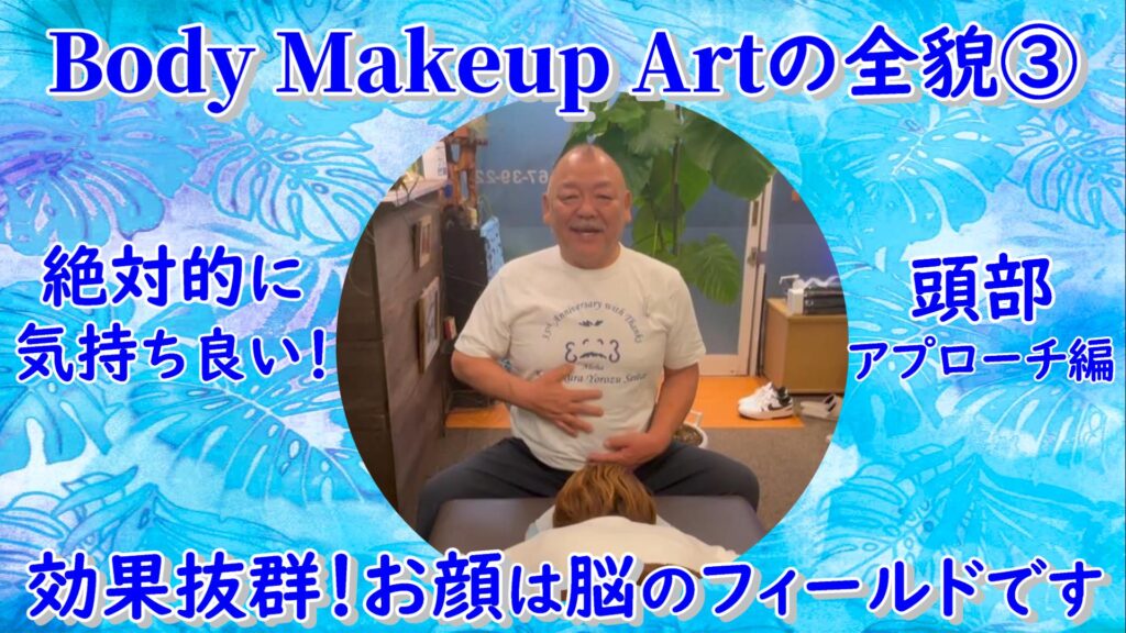 身体を彩るBody Makeup Artのご紹介動画最終回は、頭部へのアプローチの様子をご紹介いたします。頭部は脳に最も近く効果も高い場所です。あの人気の美顔ローラも登場します。とにかく気持ち良い術理!お客様のご感想は・ […]